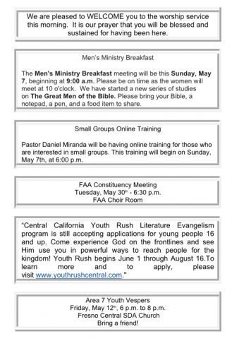 Associate Pastor: Daniel Miranda (pastormiranda@fresnocentralsda.org)